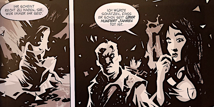 Tintenschwarze Nacht liegt über dem einsamen Herrenhaus, in dessen Eingeweiden der Autor seine Prosa mit hastender Feder aufs Pergament zu bannen sucht. Hohe Literatur ist es, wonach er strebt, realistisch und wahrhaftig. Die Geschichte von einer Jungfrau in weißem Gewand, von Monstren, die im Dunkeln lauern, von uralter Erbschuld und riskanter Liebe… Doch die Alltäglichkeiten des Lebens – sprechende Raben, sein verschollener Zwilling und Duelle bis zum Tod – unterbrechen den wack‘ren Schreiber Mal ums Mal. Sollte er sich doch lieber der Phantastik zuwenden? Diese Kurzgeschichte von Neil Gaiman, einem der größten phantastischen Erzähler unserer Zeit, wirft einen augenzwinkernden Blick auf sein eigenes Schaffen. Shane Oakleys von Mignola und Wrightson inspiriertes Artwork setzt gekonnt einen Kontrapunkt zu Gaimans Humor und verleiht dieser Horror-Satire einen unwiderstehlich düsteren Sog.