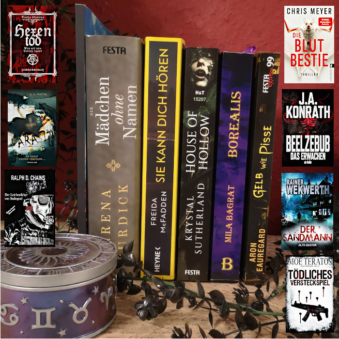 Bleiben noch meine 3 Highlights des vergangenen Monats, die ich euch ans Herz legen möchte. Zum Ersten „Die Mädchen ohne Namen“ von Serena Burdick. In diesem recht dicken Wälzer geht es um Effie, die auf der Suche nach ihrer großen Schwester in einem Heim für gefallene Mädchen landet, dass sich zwar in ihrer unmittelbaren Nachbarschaft befindet, dem sie aber trotzdem nicht entkommen kann. Die Frauen dort müssen nicht nur hart arbeiten, sie werden schikaniert und gequält. Eine packende Geschichte, die mich sehr beeindruckt hat. „Sie kann dich hören“ von Freida McFadden ist die Fortsetzung von „Wenn sie wüsste“, erneut dreht sich alles um das Hausmädchen Millie, dass ich schon im Vorgänger ins Herz geschlossen habe und auch diesmal gibt es wieder überraschende Wendungen. Als letztes wäre da noch „House of Hollow“, eine Geschichte über 3 Schwestern, die als Kinder verschwunden und erst Tage später verändert wieder aufgetaucht sind. Nun fehlt von der ältesten von ihnen jede Spur, ihre beiden anderen machen sich auf die Suche nach ihr und stoßen dabei auf allerlei merkwürdig Dinge. Für mich das perfekte Buch für die immer dunkler werdenden Abende.