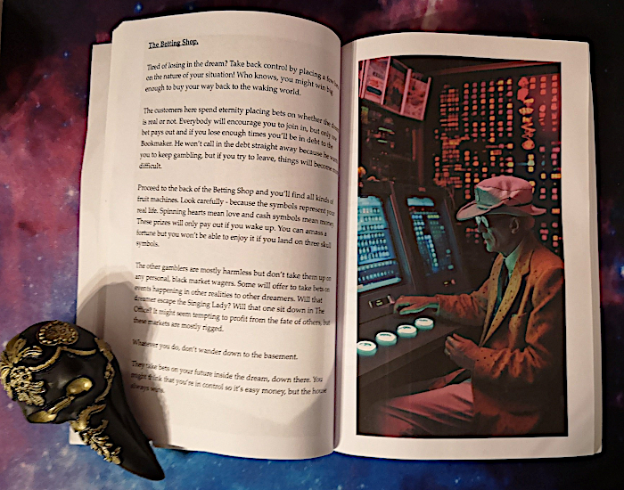 Aber fangen wir ganz vorn vorne an. Der Autor wurde vor einiger Zeit bei Tiktok für seine ungewöhnlichen Werke ziemlich gehypt. Im Mittelpunkt seiner Bücher stehen farbenfreudige, aber auch etwas düstere Illustrationen, zu denen jeweils eine kurze Geschichte erzählt wird, die nicht minder abgedreht ist als die Bilder. Das Ganze lässt sich schlecht erklären, man muss es sich einfach ansehen. Nachdem es in den anderen Teilen um verschiedene Welten geht, wendet sich „Tales: The Dreamcore Stories“ nur einer Welt zu, der der Träume, für mich ein total faszinierendes Thema. Mit wenigen Sätzen erschafft David Jones eine Traumuniversum, aus dem es kein Entkommen gibt. Auf den ersten Blick alltäglich scheinende Dinge wie ein Supermarkt, eine Pool Party, ein Spielzeugladen oder gar eine Schule haben hier alle nur einen Zweck: Den Träumenden auf ganz unterschiedliche Weise in dieser Welt festzuhalten und so am Aufwachen zu hindern, denn wer einmal dort ist, soll gefälligst auch bleiben. Die Kurzgeschichten sind verstörend, ohne blutig oder brutal zu sein, denn all diese Orten haben in der Traumwelt ein Eigenleben, das Buch ist also so etwas wie eine Warnung, ein Wegweiser durch die Träume, der verhindern soll, dass man zu tief in diese Umgebung eintaucht und nicht mehr aufwacht.