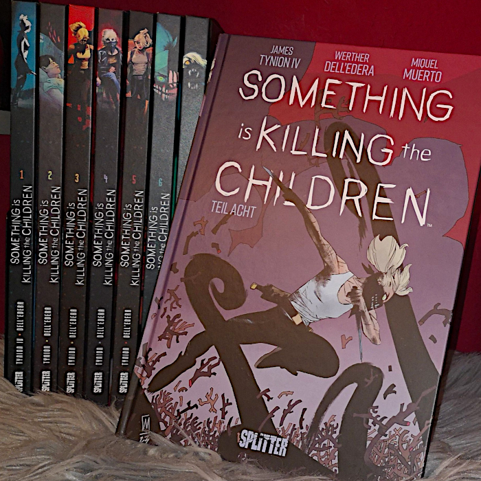 Mit dem 8. Band von „Something is killing the Children“ weicht James Tynion IV vom üblichen Schema ab und damit habe ich Probleme. Nicht, weil es hier unblutiger und weniger brutal als in den Vorgängern zugeht, soindern weil mir alles ein bisschen zu oberflächlich abgehandelt wird, deshalb vergebe ich diesmal auch nur 3,5 von 5 Miezekatzen.