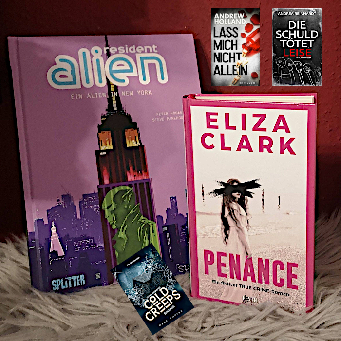 Nachdem ich letzte Woche nur ein Buch beendet habe, waren es diese Woche gleich 5, wobei zwei recht kurz waren und ich „Penance“ ja schon begonnen hatte. Fangen wir da auch gleich an, denn für mich war Eliza Clarks fiktionale True Crime Story, deren Titel übersetzt „Buße“ bedeutet, ein Lesehighlight, dass mich sehr überrascht hat. Drei Mädels haben ihre Mitschülerin auf eine sehr grausame Art umgebracht und die Story beleuchtet die Vergangenheit der drei näher und wie es zur Tat kam. Mehr will ich dazu gar nicht schreiben.