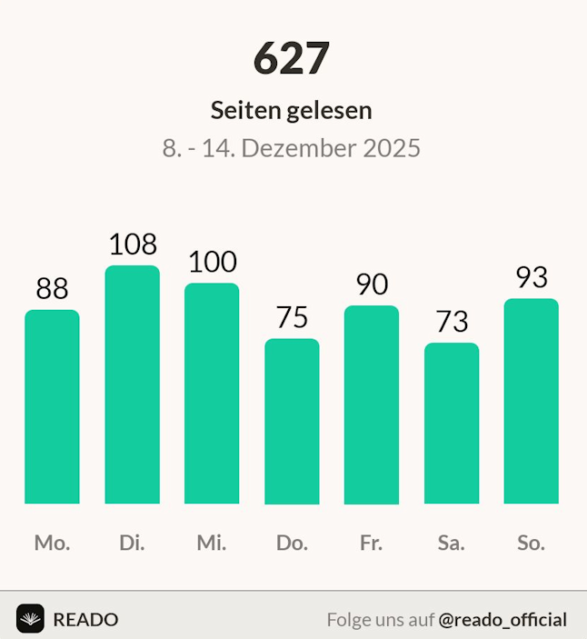 Letzte Woche habe ich 2 Bücher beendet und insgesamt 627 Seiten gelesen.