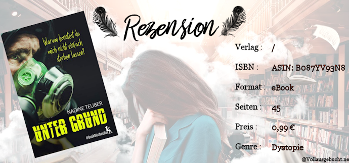 Wie zuvor schon Nici Hope, so stellt sich auch Nadine Teuber der Herausforderung eine Story rund um die fünf Worte Wattestäbchen, Reizwäsche, Goldring, Sturm und Lego zu schreiben, „Unter Grund“ widmet sich jedoch einem völlig anderem Thema und lässt sich wohl am Besten dem Genre Dystopie zuordnen.
